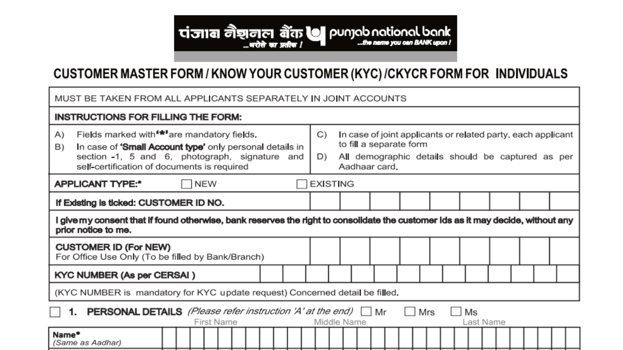 Kyc Form Filling Of Punjab National Bank By Learning Online